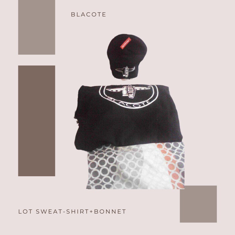 Lot bonnet blacote noir taille U +sweat noir blacote logo imprimé blanc